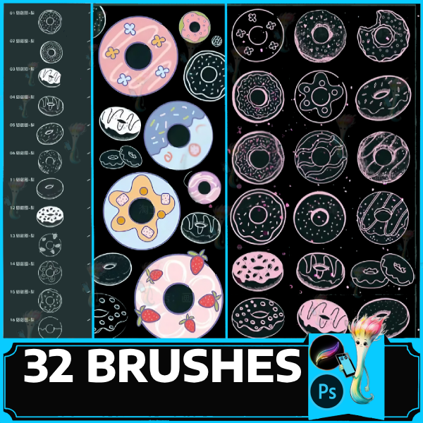 procreate brushes ps brush donut food dessert snack line draft macaron baking bread cake, photoshop brushes